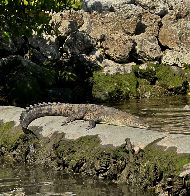 I even saw one of our crocodiles out on a rock, in the bay. When I say everyone is out, I mean everyone. There were egrets and peacocks around, too.