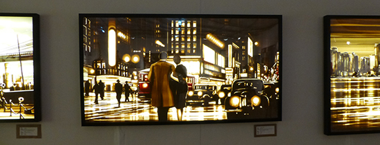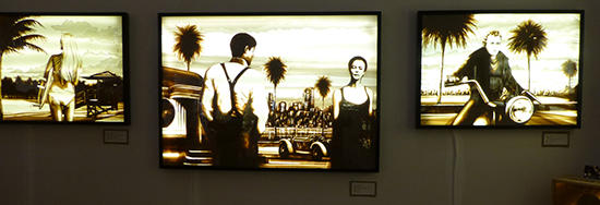 Max’s work appears to be photographs, but the whole image is made from brown masking tape on acrylic glass sheets with light behind it! As I passed by his booth at the Spectrum Art Fair, I noticed that there was tape on one of the images he was working on, I couldn’t figure out what was going on at first, I thought he was putting tape on various areas of a photograph, then it dawned on me that the whole image was made from masking tape!