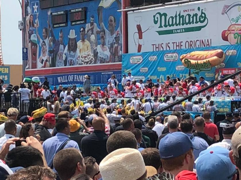 Last year at the Nathan’s Hot Dog eating contest at Coney Island.