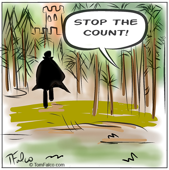 We keep hearing “Stop the count!” and I thought of this cartoon for today – Count Dracula getting away!