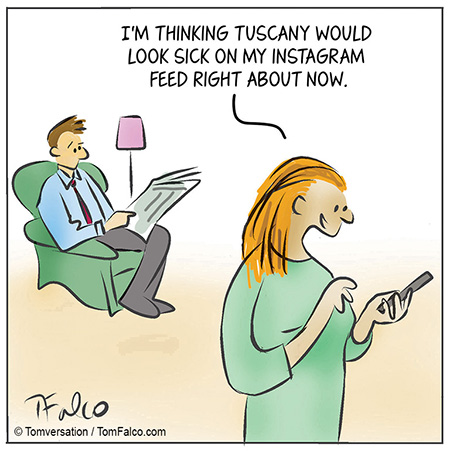 I got to thinking – will my pictures be as nice in the north fork as they are up in the mountains and the valley? How will it all look on Instagram? And from there, I got to the cartoon above, and changed the Hudson Valley, to Tuscany, to make it more of an extreme travel plan.