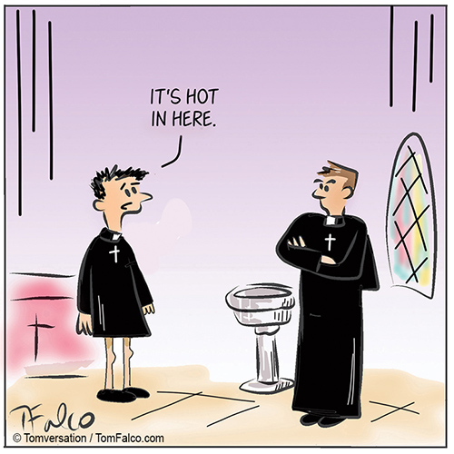 The priest cartoon made me think of the “Yes I’m hot in this” strip on GoComics