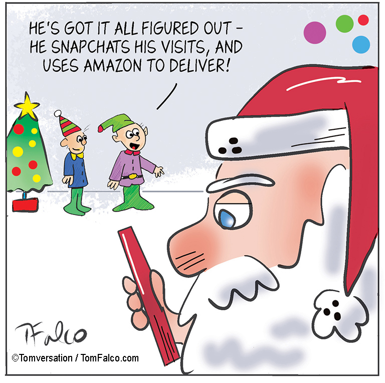 So after the first one (the close-up of Santa cartoon here), was published, I quickly drew a new Santa sitting back on an easy chair, and I had the published cartoon changed to the easy chair one.