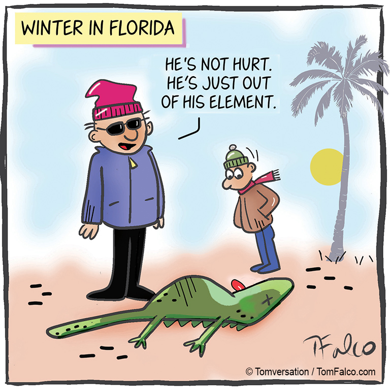 I don’t want to say I thrive on the heat, but I now do prefer a 76 degree day to 35 degrees. I know the iguanas prefer it, too.