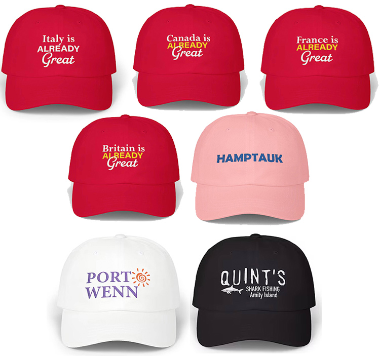 They are a play on “Make American Great Again” hats. We have Great Britain Canada and Mexico, too. The Italy ones seem to sell the most. Interestingly enough, we don’t ship outside the U.S., yet these foreign hats sell a lot here in the U.S.
