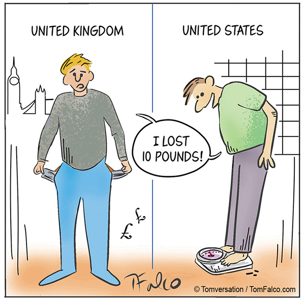 I like the double meaning cartoon, I’m thinking of doing it more often. Some time back I did this one about “10 pounds,” which has two meanings.