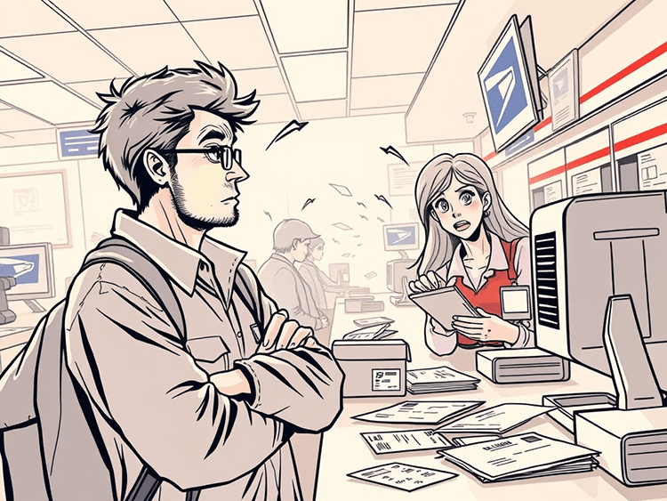 There was one other postal worker there and she was helping a lady and she went into the back, and she was gone. And for what seemed forever, the lady and I stood out at our postal windows waiting for the two postal workers to return. And we waited and waited.
