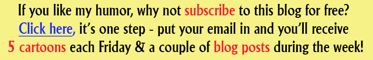 Subscribe to this Tomversation blogby clicking here – it’s free! Receive my five cartoons each Friday and 2 blog posts during the week!