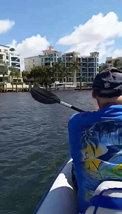 My friend Jorge came over with a new kayak – a blow-up kayak! I told him we had regular kayaks here at the building that we could use, but he insisted on purchasing a rubber blow-up one. So he brought it over and while I didn’t want to go out in that thing, I thought, “Let’s see what happens.”
