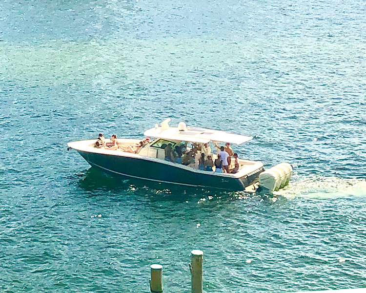 The strange thing is that there are usually from 15 to 20 people on the small boat. Yes, I counted. The boat looks to be 20 to 24 feet, so I’m not sure how comfortable that is, but most likely they head out to a sandbar or “the flats” and I heard the older man mention Soldier Key one time. So the kids ride out and then spend the time in the water, I guess.