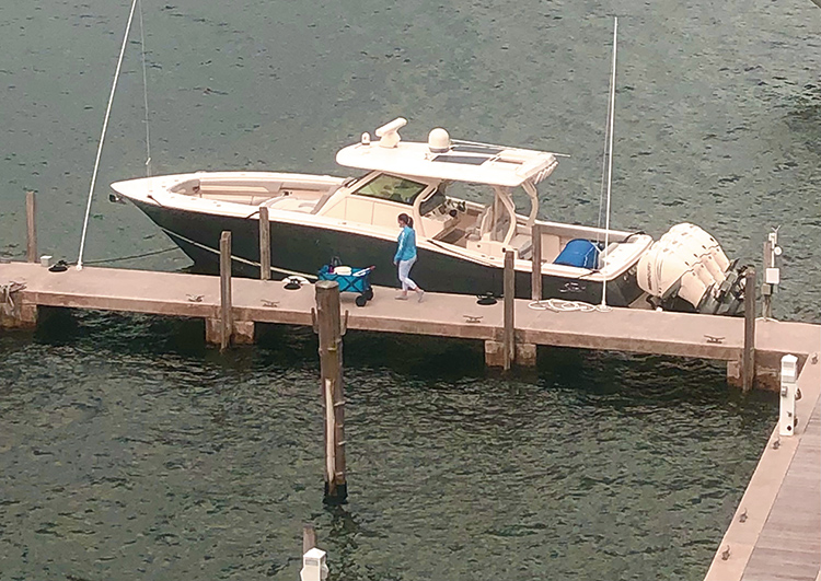 Right on cue, she’s there Monday morning to clean the boat.