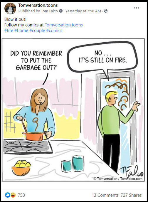 Cartoonist Jason Chatfield said, “Don’t curate your art to what gets likes. Curate it to what you like.” And I’ve tried to live by that. Not so much the drawing, but the whole comic and gag. Sometimes I feel that the audience won’t get the gag or think something is funny, but I go with my gut feeling, and it seems to work out.