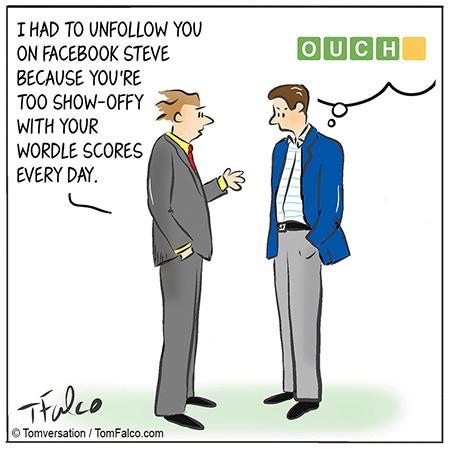 I didn’t change the drawing, I changed the wording. It reminded me of something someone said on social media about the New Yorker cartoon I wrote about the other day – that “they draw the images and then figure out what they are saying later,” which of course I don’t think that’s the case, but maybe it is, because this Wordle gag ended up that way.