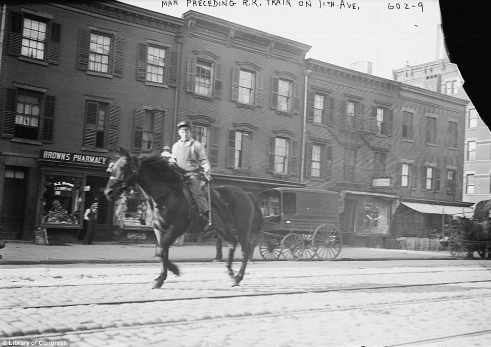 So freight trains shared the streets with horses and buggies and eventurally cars and trolleys. But here is the amazing part – people would get hit by the trains at times. I don’t know how you don’t hear a freight train coming down the street, even at slow speeds, but people would acutally get hit.