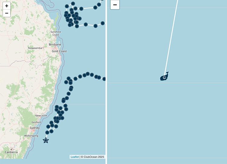 My humpback whale, Merlin, a female, is off the coast of Australia. She is about 45 feet long.