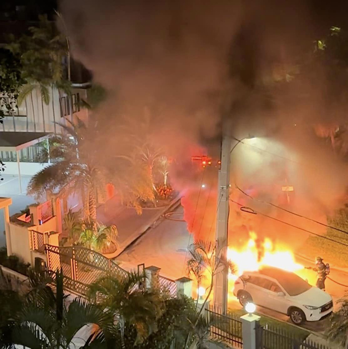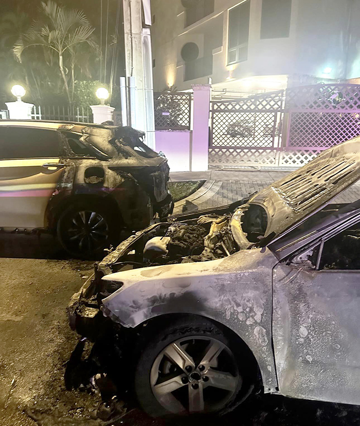 It ended up being the newspaper delivery people’s car. The man and woman who deliver the Miami Herald. They were in the car driving around the bend delivering papers when their car exploded which caused the fire and all the chaos! Luckily they got out in time.