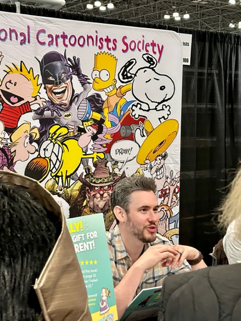 I walked around for a long time looking for the National Cartoonist Society booth, the program provided by the convention, didn’t show their location. Finally found it after an hour of walking around and there was Jason Chatfield, right in the center, doing his thing, which I think was drawing and giving out autographs.