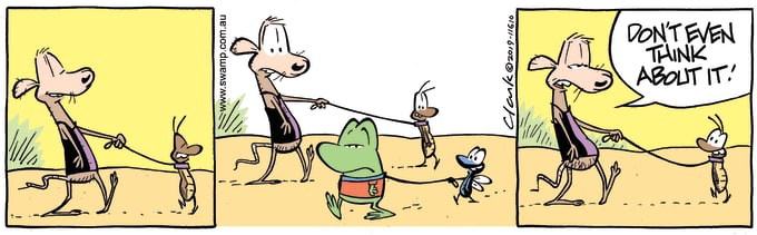 Swamp by Gary Clark is a favorite of mine – when it would pop up online somewhere. You can read that online at swamp.com.au and Snake by Allan Salisbury can be seen here: snakecartoons.com/snake.htm.